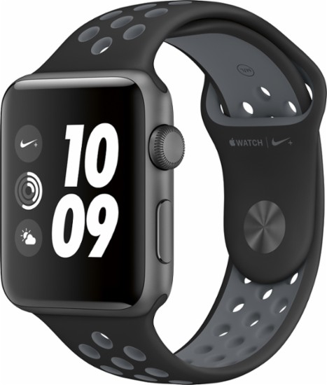 Apple - Apple Watch Nike+ 42mm Space Gray Aluminum Case Black/Cool Gray Nike Sport Band - Space Gray Aluminum