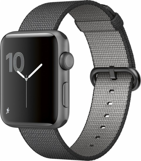 Apple - Apple Watch Series 2 42mm Space Gray Aluminum Case Black Woven Nylon Band - Space Gray Aluminum