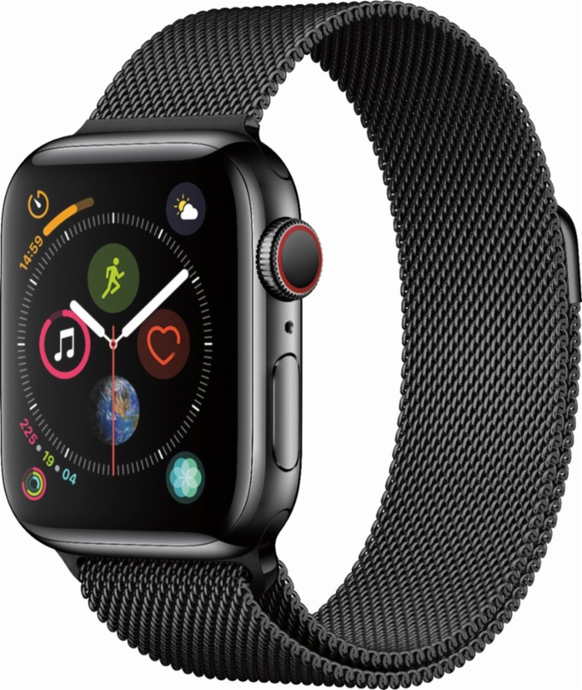 Apple - Apple Watch Series 4 (GPS + Cellular), 40mm Space Black Stainless Steel Case with Space Black Milanese Loop - Space Black Stainless Steel