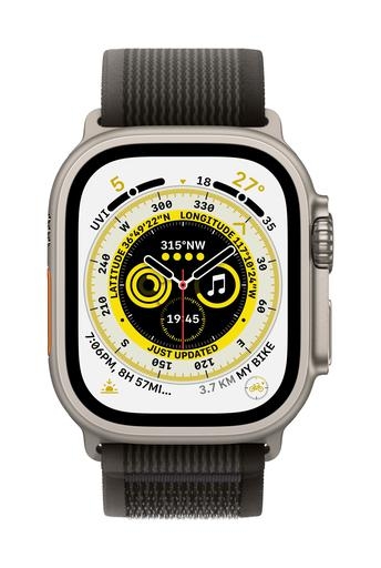 • Apple Watch Ultra (GPS + Cellular) 49mm Titanium Case with Black/Gray Trail Loop