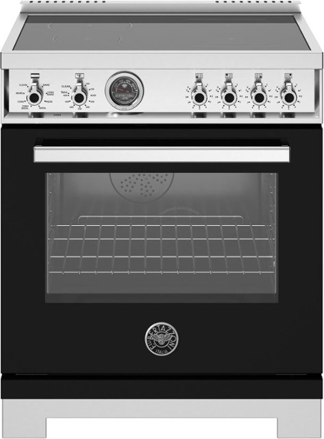 Loading... Please wait...This 30” Induction range has 4 high-power heating zones with maximum power output of 3700W, Bridge Element, 4.6 cubic feet self-cleaning oven, dual convection fan, 7 shelf levels, digital gauge, temperature probe, telescopic glides, soft-close doors, air-frying mode. All Bertazzoni appliances are covered by a 2-year warranty.
