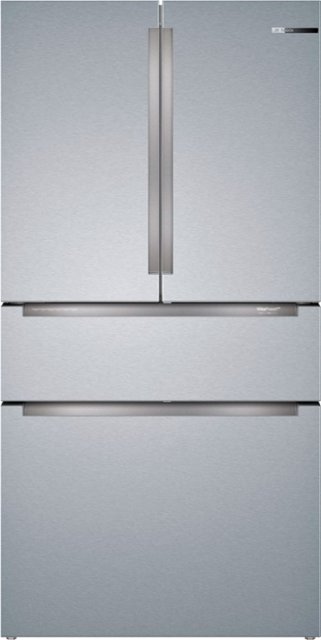 Keep food fresh with this Bosch 800 Series refrigerator. Two humidity-controlled compartments keep food fresh for long, while a FlexBar storage bar delivers flexible cold drink storage. The LED lighting illuminates when dark, and the 21-cu. ft. capacity holds large volumes of food. This Bosch 800 Series refrigerator is made of stainless steel for durability.