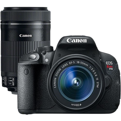 Canon EOS Rebel T5i 18.0MP DSLR Camera with 18–55mm IS STM Lens - Black: 18.0-megapixel APS-C CMOS sensor; EF-S 18–55mm f/3.5–5.6 zoom lens; 100–12,800 ISO range (expandable to 25,600); up to 5 fps (frames per second)