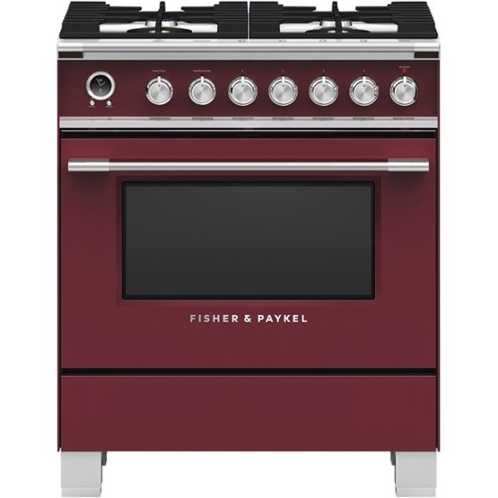 Loading... Please wait...Combine stunning style with modern efficiency when you upgrade to this bold red Fisher & Paykel dual-fuel range. Rapid preheating gets the True Convection oven ready for roasts in moments, while AeroTech technology distributes heat evenly for multilevel cooking. Boasting telescoping racks for easy retrieval and safe basting, this Fisher & Paykel dual-fuel range delivers gourmet results.