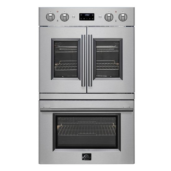 Introducing the Asti 30. in. Electric Double Wall Oven with French Doors, sure to elevate any kitchen. Crafted in sleek stainless steel, this double oven combines innovation with style. The top oven, featuring elegant French doors, reveals a spacious 4.32 cu. ft. capacity. Below, a classic chef door opens to another 4.32 cu. ft. capacity. Together, they offer a grand total of 8.64 cu. ft. Immerse yourself in advanced cooking technology with features such as sous vide, true convection, versatile bake functions, and a dedicated air fry pan. With convenience in mind, the Atsi Double Wall Oven is a testament to the future of home cooking.