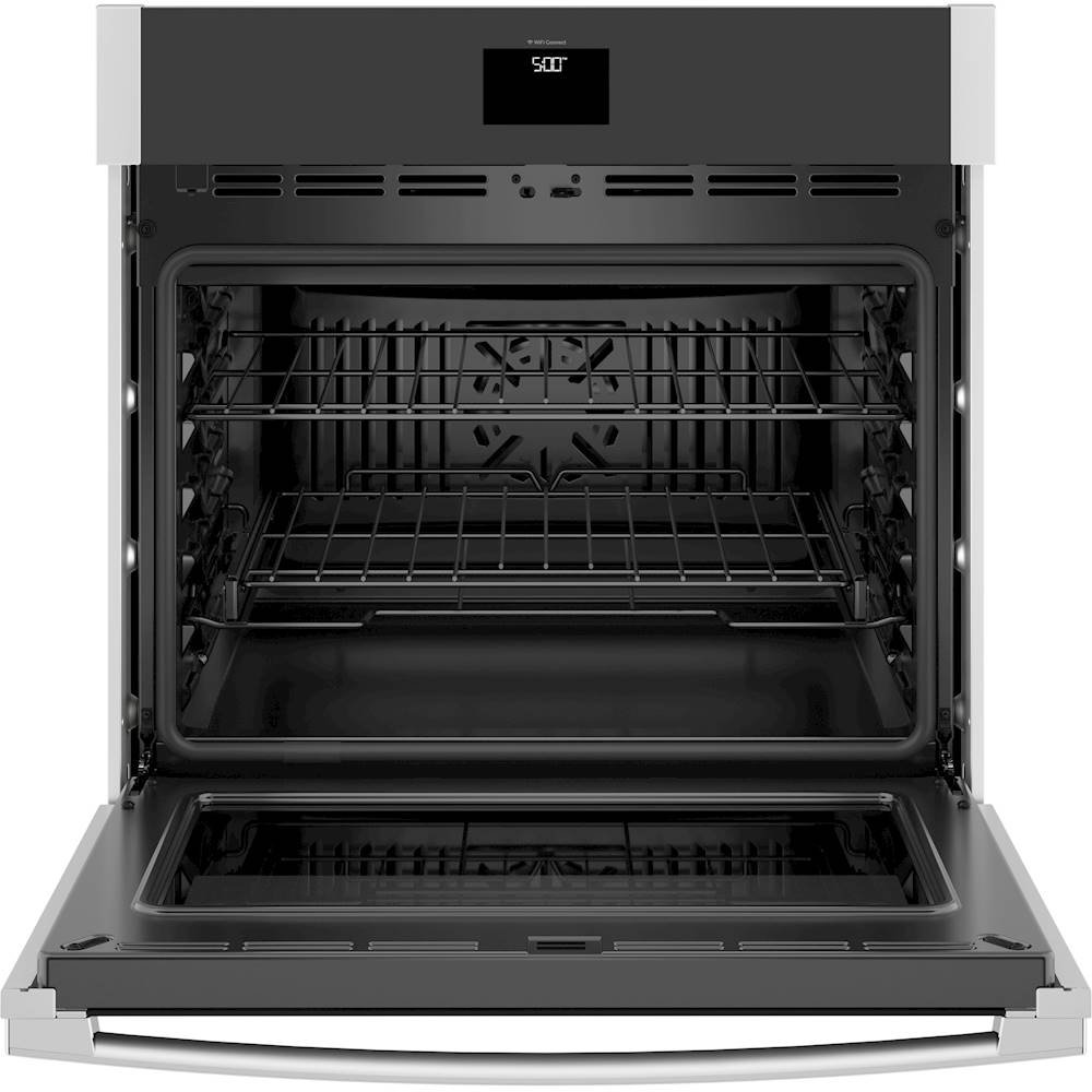 Control every detail of dinner preparations with this 30" GE convection wall oven. Its true European convection uses a third element and fan combination to create beautifully even results every time. This 5.0 cu. ft. built-in GE convection wall oven lets you bake multiple recipes simultaneously.