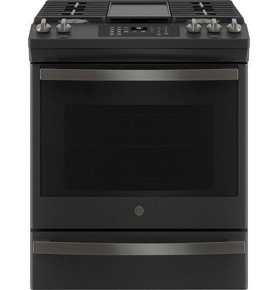 Loading... Please wait...Cook like the professionals with this GE slide-in gas range. Hot air fyring gives you crispy results without using oil and the large integrated non-stick griddle gives you more room to cook. The 18,000 BTU power boil burner allows you to boil water in less time and the 10,000 BTU oval burner fits odd-size cookware. This 30-inch GE gas range has a slide-in design for a perfect fit that looks custom built.