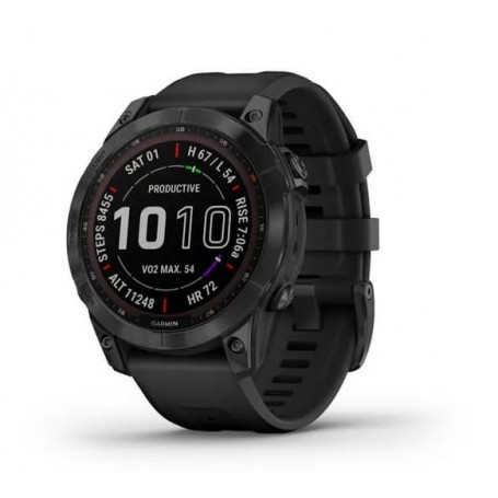 There are 7 days in a week. And the fēnix 7 Sapphire Solar multisport GPS watch is built to go strong for all of them. Featuring a 1.3” display and scratch-resistant Power Sapphire solar charging lens, it has the battery life to sustain your athletic and outdoor challenges. Use trusted button controls or the new touchscreen interface to access selections. Gain performance insights and metrics that help you manage your exertion and build stamina. Optimize recovery with 24/7 health and wellness monitoring of heart rate, respiration, stress, sleep and more (this device is intended to give an estimation of your activity and metrics; it is not a medical device). Outdoor navigation sensors and new multi-band GNSS technology help guide you with a higher level of positioning accuracy, even in challenging environments. Plus, you’ll have preloaded TopoActive maps and worldwide ski and golf maps right on your wrist. To complement your tamer days, connected features include smart notifications when connected to a compatible smartphone, music storage and Garmin Pay contactless payments in supported countries and payment networks