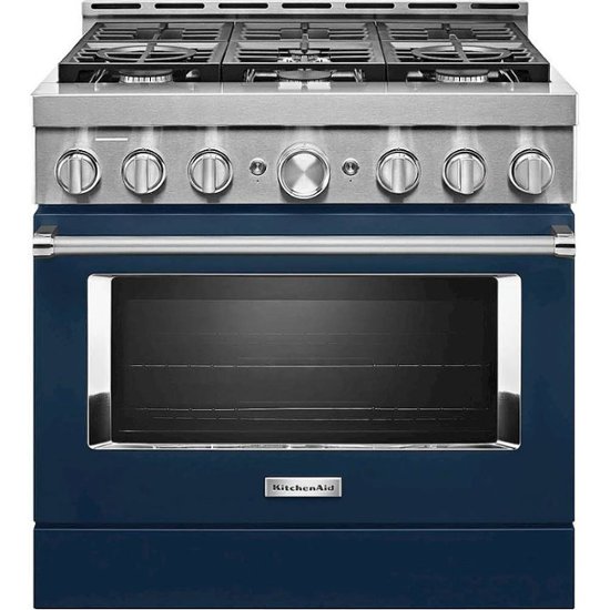 Expand your skills with a 36" KitchenAid commercial-style range with 6 burners. This gas range features two versatile 20,000 BTU Ultra Power dual-flame burners with the power and precision needed to successfully sear, simmer, stir-fry, and sauté. The Even-Heat true convection helps you achieve more consistent baking and roasting.