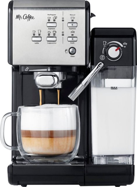 Loading... Please wait...Create cafe-quality coffee drinks at home with the Mr. Coffee One-Touch CoffeeHouse espresso and cappuccino machine. The 19-bar Italian pump delivers espressos and cappuccinos within minutes, and the integrated automatic milk frother provides just the right amount of foam for a perfect latte. A one-touch cleaning cycle and removable reservoirs make cleaning the Mr. Coffee One-Touch CoffeeHouse espresso and cappuccino machine easy.