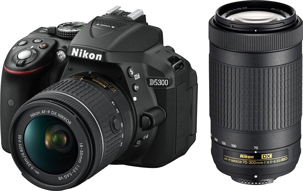 Nikon D5300 DSLR Camera with AF-P VR DX 18-55mm and AP-P DX 70-300mm Lenses - Black