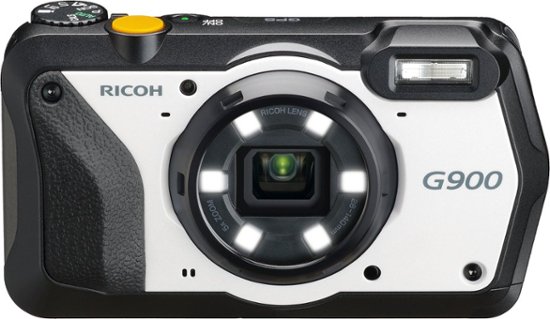 Optimized for use on worksites, the Ricoh G900 pairs a truly rugged physical design with versatile imaging capabilities and an immense feature set to complement its use at industrial sites. Featuring a 20MP BSI CMOS sensor, high-resolution stills shooting and UHD 4K30 video recording are possible, and an ISO 125-25600 sensitivity range benefits working in various lighting conditions. A 5x optical zoom lens also contributes to the camera's flexibility, and covers a wide-angle to telephoto 28-140mm equivalent focal length range, which is benefitted by a series of digital Shake Reduction modes to produce sharper handheld images. The G900's distinguishing features, though, lie in its tough physical design, which renders it waterproof to depths of 65.6', shockproof from heights of 6.6' as well as freezeproof, crushproof, dustproof, and resistant to chemical disinfection. Also complementing its use on worksites is the incorporation of an enhanced Camera Memo function, for attaching text or audio messages to files, and an advanced password protection Camera Lock function to restrict use of the camera. Surrounding the camera's lens is an LED ring light that, besides illuminating close-up subjects, works in conjunction with a Barcode Scanning mode. A high-accuracy GPS module is also incorporated into the camera's design, and permits embedding location information within your image files. Waterproof-rated for use underwater to depths of 65.6' / 20m for up to two hours of continuous operation (IPX8/JIS Class 8-equivalent); Freezeproof to temperatures as low as 14°F / -10°C; Shockproof to falls from 6.6' / 2m high / Crushproof to withstand up to 220 lbf / 100 kgf of pressure; Dustproof to protect the internal components of the camera (IPX6/JIS Class 6-equivalent); Chemical-resistant for using ethanol disinfection, bleach disinfection, and liquid chlorine dioxide, to suit business, industrial, and construction site use. Worksite features include an integrated LED ring light also facilitates the ability to scan barcodes in a dedicated Barcode Scanning mode., helping to maintain consistent compositions and for assessing progress at a construction site. Transparency Guide allows you to recall a previously captured image on the LCD monitor and use it as a template for capturing a new image with the same composition. The transparency level can be adjusted between 20% to 80% and you can recall two separate images for at-a-glance comparisons. Image Clipping function permits checking two related images, such as an image or a worksite and an image of survey data, on a computer screen. Electronic Level guide can be used to maintain consistently straight horizons and verticals. Integrated Camera Memo function allows you to attach text items to images (100 text items maximum, with up to 128 characters per item) or audio files (up to 30 seconds).Password-Protected Camera Lack Function: The G900's operation can be restricted entirely or partially by locking camera functions using a password. GPS System is enhanced for greater accuracy, the integrated GPS module corresponds to the latest satellite navigation augmentation system, SBAS. QZSS, GLONASS, and U.S. GPS satellites are also supported for quick activation—approximately 1 minute from shut-down, 20 seconds from sleep mode, or 3 seconds from standby—and a dedicated GPS button is featured within the four-way controller for recording location information to images by the GPS memory function. The compass also affords access to an electronic compass, which covers 360° in 16 directions.