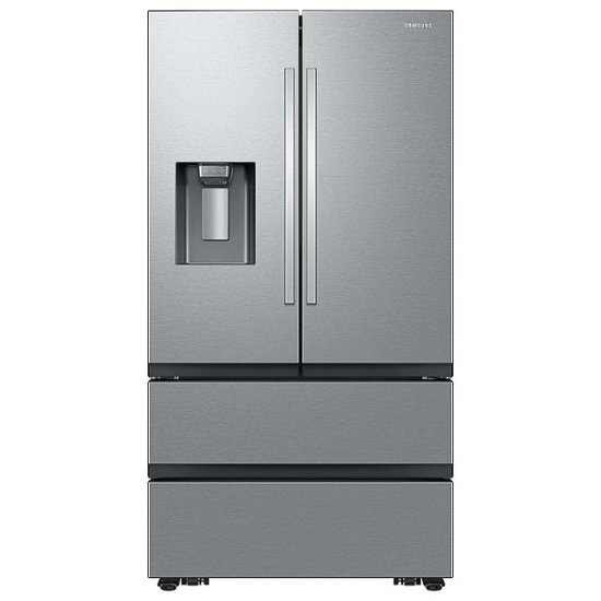 Samsung Mega Capacity 4-Door French Door Counter Depth refrigerator with 25 cu. ft. comes with four types of ice and modern design. Store more groceries, including big and bulky items. The Dual Auto Ice Maker makes two types of ice – cubed or Ice Bites while the external dispenser offers two additional ice options, curved and crushed.