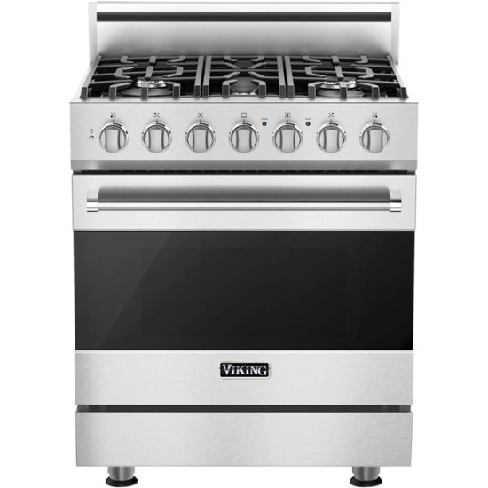 Loading... Please wait...Prepare meals faster with this 30-inch Viking 3 Series dual-fuel range. The 4.7-cu. ft. oven has six rack positions that support roasting, broiling or baking at different temperatures, while the halogen lighting enhances visibility. This Viking 3 Series dual-fuel range features five permanently sealed burners, letting you cook crowd-sized meals.