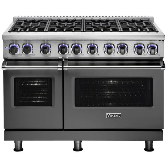 Loading... Please wait...Bake your cakes and your dinner with this Viking 48-inch dual-fuel range. The Rapid Ready preheat feature ensures the two ovens preheat faster so you can start baking when you are ready, creating cookies and cakes in one while cooking casseroles or full roasts in the other. This Viking 48-inch dual-fuel range has a continuous grate design for easy maneuverability.