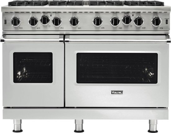 Loading... Please wait...Viking's open burner all gas range provides commercial performance for residential use. Featuring 8 high performance burners and infrared broil with 2 ovens, this oven is designed for all of your cooking and entertainment needs. Porcelain burner bowls and a full width pull out tray makes clean up of your cooking surface a breeze. The all gas oven also features multiple convection cooking options for better air circulation in the cavity. Commercial grade chrome oven racks are designed to support heavier items like your Thanksgiving turkey or multiple casserole dishes. This LP model is configured by the factory for Liquid Propane gas applications.