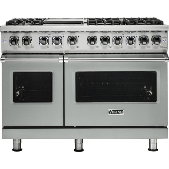 Loading... Please wait...Entertain a big group easily with this Viking Professional 5 Series dual-fuel range. The two spacious ovens let you bake and roast at the same time, while the Rapid Ready preheat system delivers quicker cooking times. Featuring a six-burner cooktop, this Viking Professional 5 Series dual-fuel range is suitable for multicourse meal preparations.