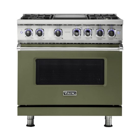Loading... Please wait...Release your inner chef with this Viking Professional 7 Series dual-fuel range. The Gourmet-Glo infrared broiler produces the intense heat required to perfectly sear meat while retaining the juices, while the stylish LED backlit BlackChrome knobs ensure optimal operation. This 36-inch Viking Professional 7 Series dual-fuel range has the SureSpark ignition system on all burners for reignition if the flame is accidentally extinguished while cooking.