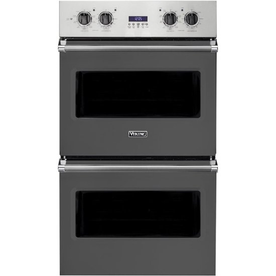 Flaunt your culinary expertise with this Viking 30-inch electric double wall oven. The RackView trimless windows are 20 percent larger than ordinary oven door windows for excellent visibility when baking, and elegant BlackChrome knobs support easy operation. This Viking 30-inch electric double wall oven has a concealed 10-pass dual bake element for easy cleaning, while halogen lights ensure interior illumination.