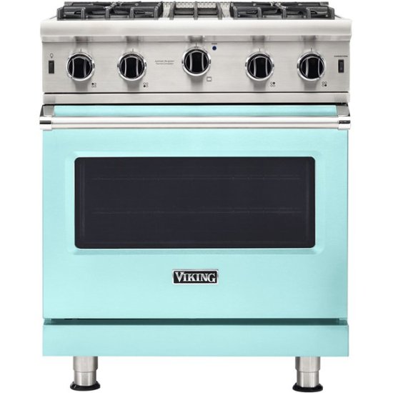 Loading... Please wait...Prepare your favorite dishes with this 30-inch Viking Professional 5 Series open-burner gas range. The heavy-duty metal knobs offer reliable durability and easy operation, while the four stainless steel burners are equipped with SureSpark ignition systems for enhanced safety. This Viking Professional 5 Series open-burner gas range has a large oven for cooking big meals.