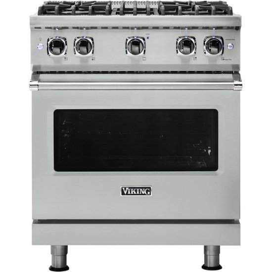 Loading... Please wait...Enjoy cooking for loved ones with this Viking 30-inch sealed-burner gas range. The raised edges on the cooking surface keep spills in one place for easy cleanup, while the BlackChrome metal knobs are durable and ensure optimal operation. This Viking 30-inch sealed-burner gas range features a ProFlow convection baffle system for even heat circulation in the oven to produce perfect baking results.