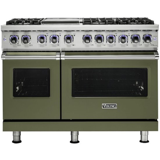 Loading... Please wait...Shorten cooking times with this 48-inch Viking Professional 7 Series sealed-burner gas range. The Elevation burners produce up to 23,000 BTUs to meet various heat requirements, and the Gourmet-Glo infrared broiler ensures quick, effective searing. This dual-oven Viking Professional 7 Series sealed-burner gas range has removable griddle and knobs for easy cleanup.