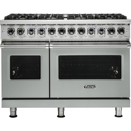 Loading... Please wait...Cook bigger, better meals with this Viking 5 Series dual-fuel range. The eight powerful burners accommodate large cookware and deliver even heat, and the sealed designs make cleaning up spills simple. This Viking 5 Series dual-fuel range has two built-in ovens with concealed bake elements that preheat quickly and maintain steady temperatures.