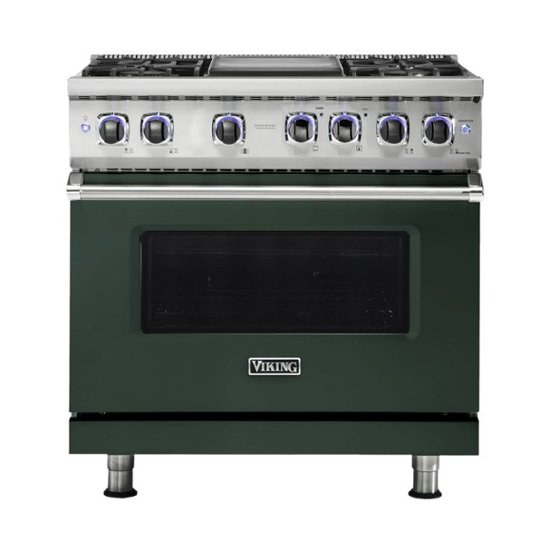 Loading... Please wait...Cook consistently delicious meals with this Viking 7 Series dual-fuel range. The four sealed burners produce enough heat to cook large dishes, and the BlackChrome metal knobs let you make precise temperature adjustments. This Viking 7 Series dual-fuel range has a built-in griddle with a grease management system that makes cleanup fast and easy.