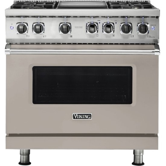 Loading... Please wait...Enjoy cooking for loved ones with this Viking 5 Series dual-fuel freestanding range. The SureSpark ignition system on all burners provides electric ignition and reignites whenever the flame is accidentally extinguished. This Viking 5 Series dual-fuel freestanding range has self-cleaning features for peace of mind, while the continuous heavy-duty porcelainized grates are durable and ensure easy and safe movement of large pots.
