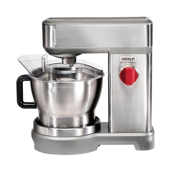 Loading... Please wait...Mix ingredients with this stainless steel Wolf Gourmet stand mixer. The gearing system and robust motor ensure optimum speeds for mixing tough items, while the 7-quart bowl is large enough to prepare recipes. This Wolf Gourmet stand mixer features a proprietary design that ensures easy bowl adjustment and provides stability.